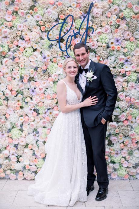 Flowers by Mayumi constructed a beautiful flower wall, which served as a focal point throughout the evening. She also designed the chuppah, centerpieces, and even a floating arrangement for the pool!