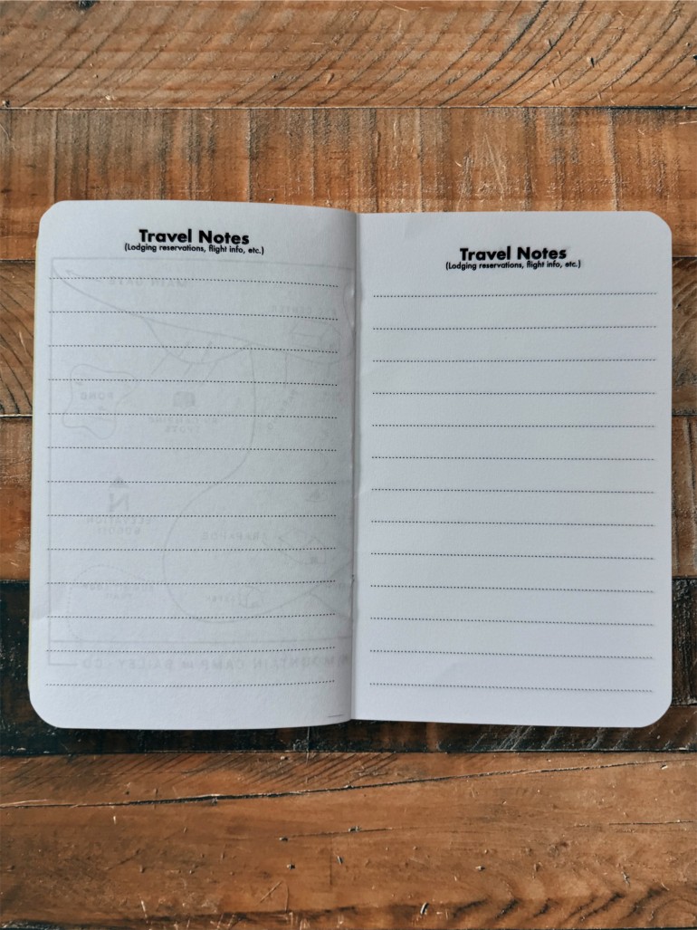 • Blank travel note pages