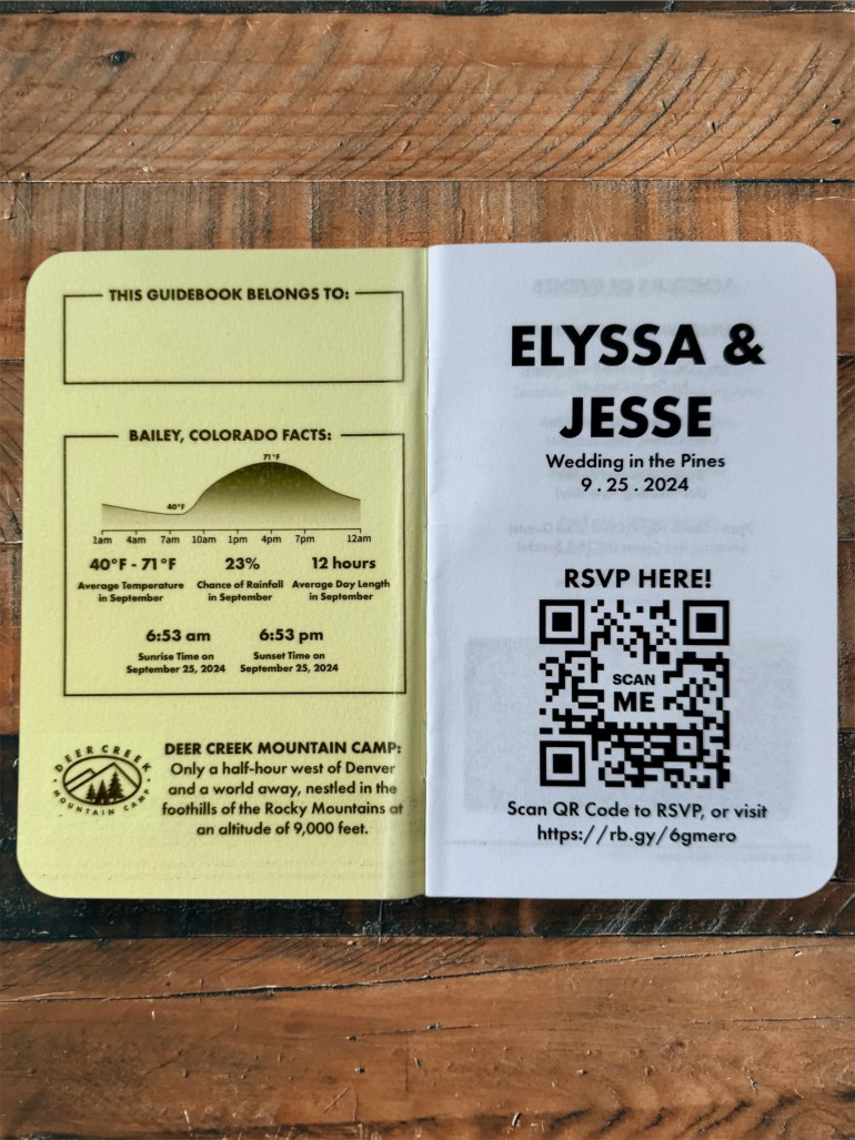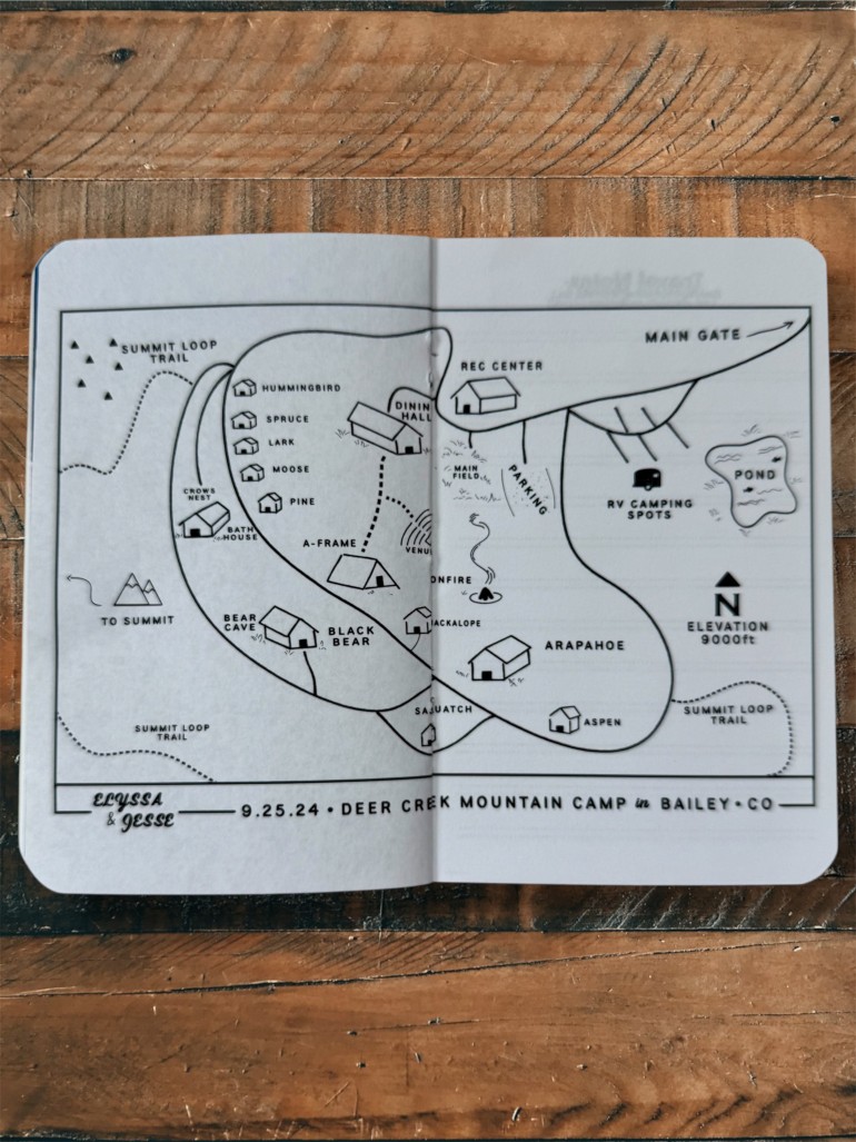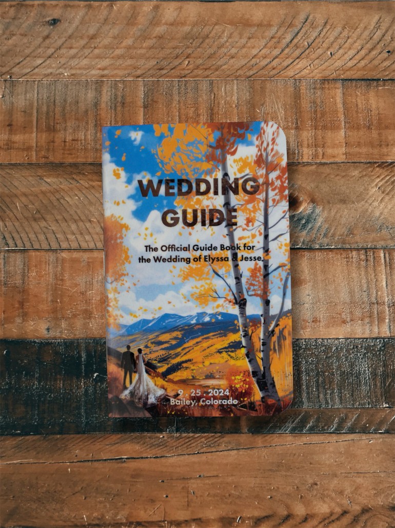 Jesse Morgan and Elyssa Bell wanted to create a wedding guide inspired by their favorite field notebook. With a cover reflecting their home state, wedding location, and chosen color palette, the design came together in stunning detail.