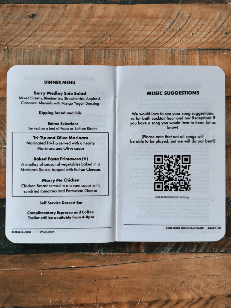 • RSVP and music suggestion QR codes