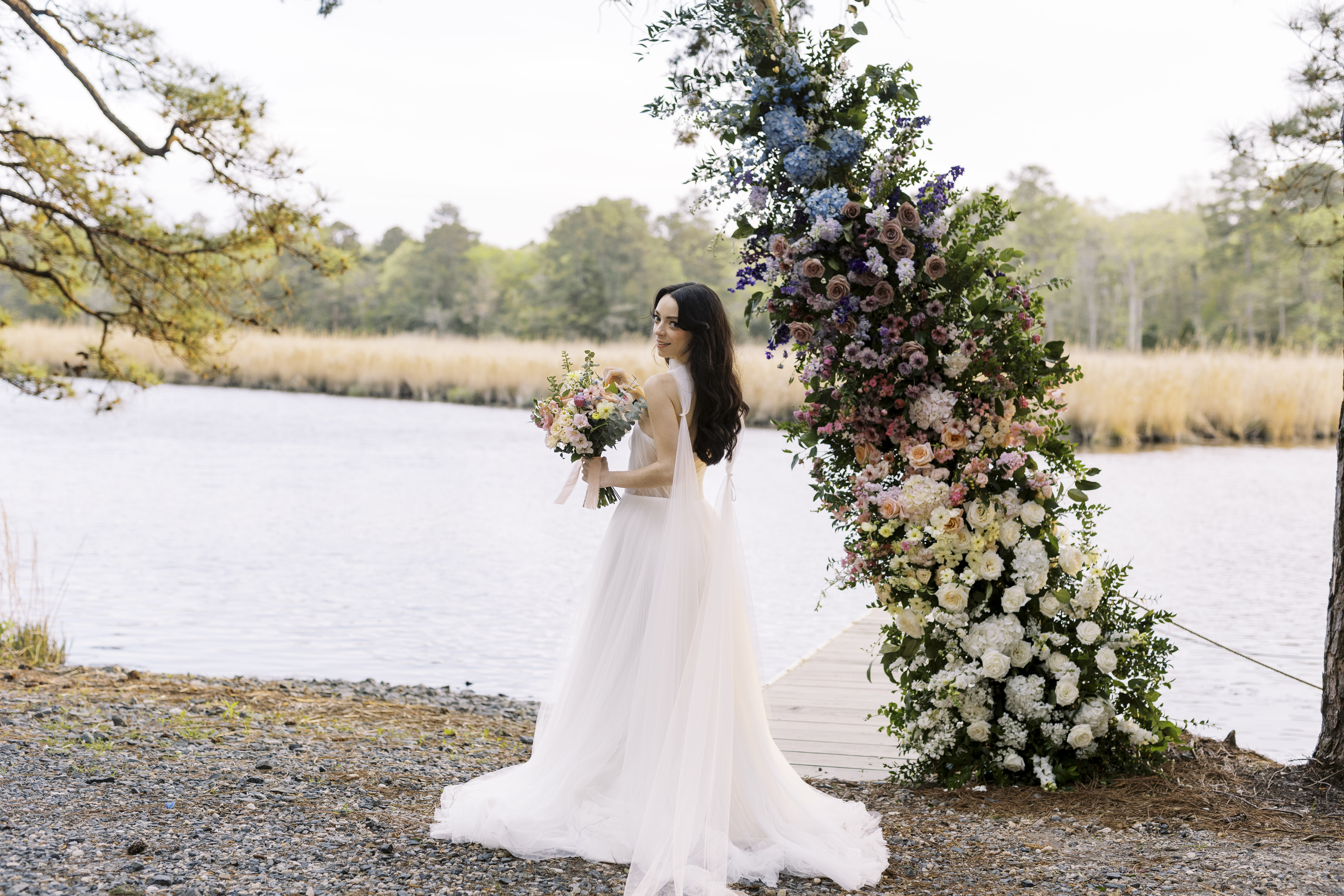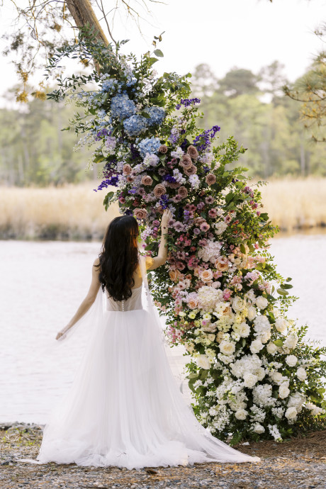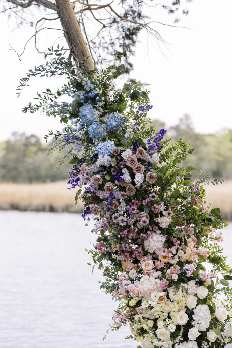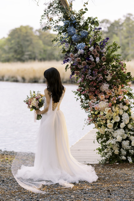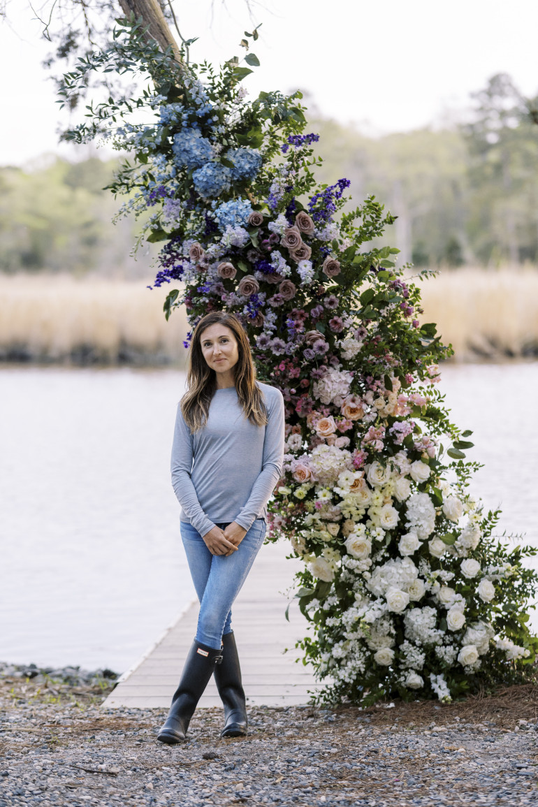 Dani's passion lies in growing flowers, and so a large part of the business lies in providing flowers for wholesale. However, through selling to and working with other designers, Dani also learned about the mechanics, color palettes, tips, and tricks of floral design. Dani laughs, "Call it passive training, if you will. I have talented designers all around me who I've been privileged to learn from. I still bring in freelance designers to help during the busy season." But putting her hand to design has led to some amazing compositions and arrangements, and a recently styled shoot on family hunting property on the Wicomico River. The shoot featured Winters Farm florals in a design style she calls "Eastern Shore meets Coastal".