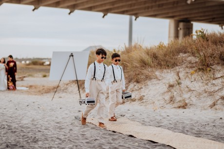 The couple opted not to have a traditional wedding party—instead, they opted to have their mothers standing at the altar with them.