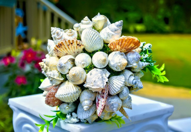 After all the finger food’s been eaten and all the presents have been opened, the maid of honor at the end of the shower traditionally collects the ribbons and bows from the gifts and uses them to make a handmade ribbon bouquet for the bride to use at the rehearsal dinner. While the sentiment behind this tradition is beautiful, the bouquet is usually better in theory than in actual execution. To make less work for the maid of honor or to simply carry a handcrafted item that’s more appropriate for a coastal wedding, consider exchanging the mess of ribbons and bows for one of Salty Soul’s seashell bouquets.
