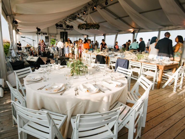 Some couples choose to hold their ceremony and cocktail hour outdoors or under a tent, then move into the ballroom for the reception. However, you can also opt for your reception to be tented on the waterfront!