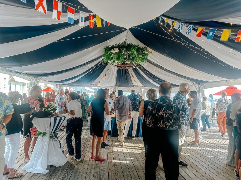 Big Chill sits on the second floor, boasting panoramic views of both the ocean and bay, including the inlet bridge! Big Chill doesn’t require a tent, however, we wanted to include them on our list, based on the uniqueness of the venue. In the early years of Big Chill, they did have a permanent structure tent installed, which was used for all of the events, recently, they have built a pavilion-like building with roll-up doors, which on a beautiful summer day with the doors opened, will feel like you’re right on the beach!