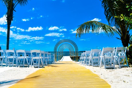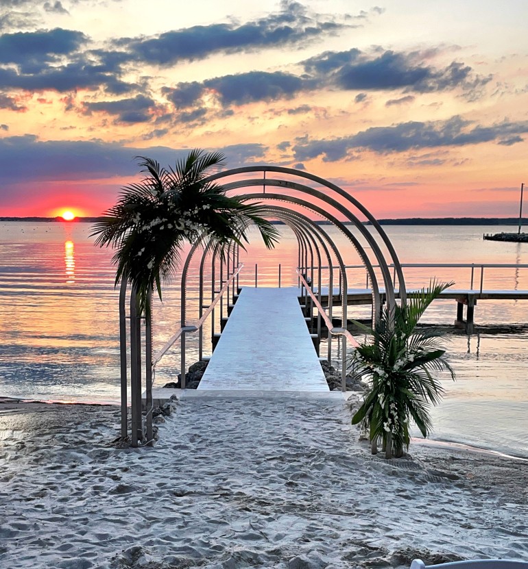 Finally, we toured the secluded tropical oasis, Your Secret Beach. An untouched 250’ bayfront beach property overlooking the bay, Heidi pointed out the custom archway lining the dock, “The bride or the entire bridal party can take the Seacrets’ ‘Tipsy’ shuttle boat from Wight Bay and arrive at our private dock for their ceremony. It makes quite an entrance.” This space is perfect for a tropical or sunset wedding and creates a cozy evening atmosphere with a private gated entrance and surrounding lush greenery.