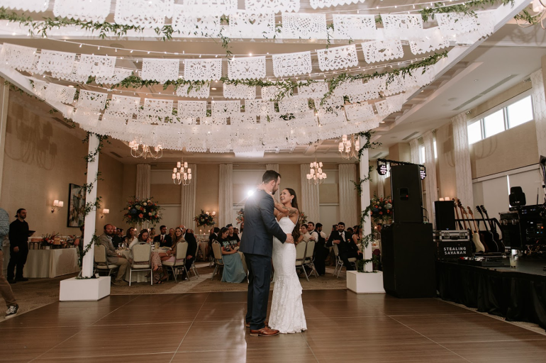 When creating your wedding budget, 15 percent should go into floral and décor. And floral installations are a good place to put your money if you’re looking to emphasize a theme or personality.