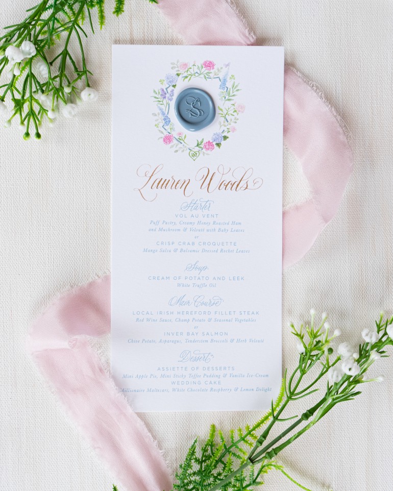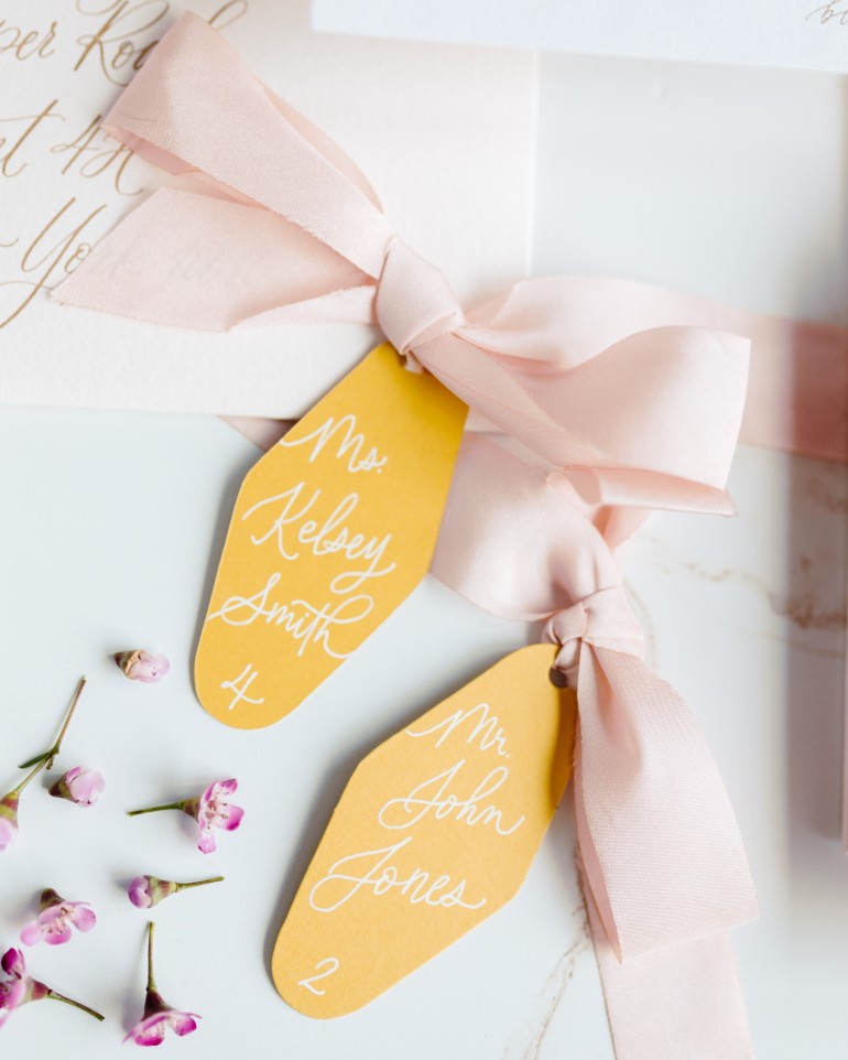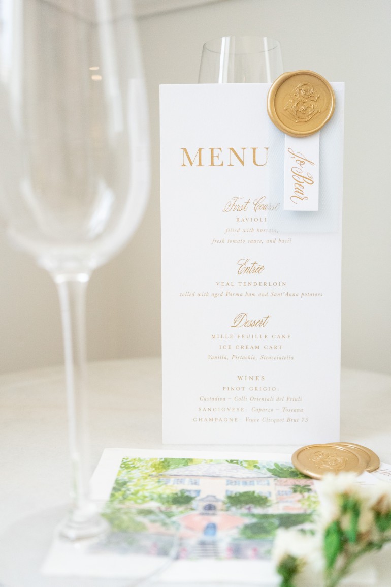 Many couples opt to include additional “day-of” paper goods, such as menus, ceremony programs, and escort cards that tie everything together with the small details.