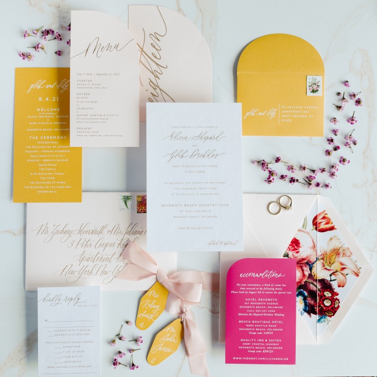 When your guests receive their invitation, it will be their first taste of your wedding aesthetic. This is the perfect time to tie your theme and colors together in a way that reflects you as a couple. Local artist Katy Ackerman, owner of Lewes Lettering Co., is known worldwide for her custom luxury wedding invitations and stationery featuring hand-created calligraphy. Katy gave us the rundown of everything trending this year for wedding paper goods, and what you need to know in order to create your perfect invitation suite.