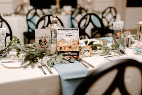 "Instead of using traditional table numbers, our table numbers were listed as the years we've been together starting with 2011, 2012, 2013, etc. A picture of us from that specific year was also included on the tables. Our guests really enjoyed this and went around to other tables to look at all the pictures! This also worked out well for us since we had a smaller guest list and could make this happen with 12 tables in total (years 2011-2022)."