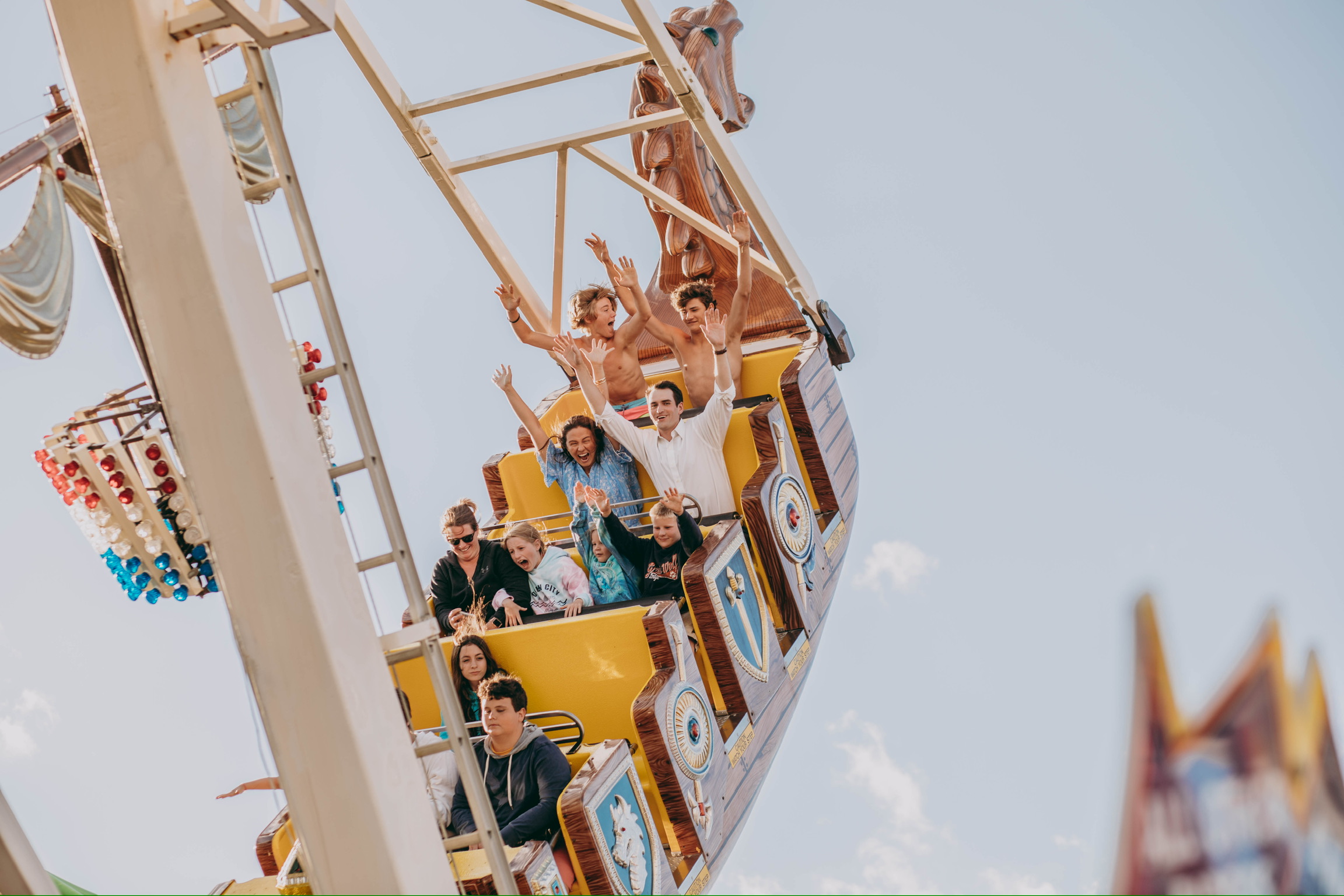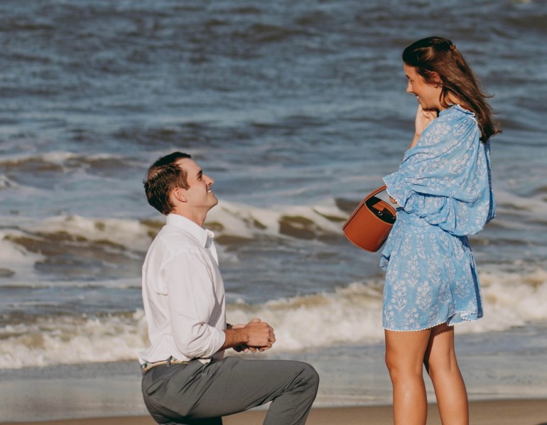 Andrew’s proposal, on the beach at the end of Wilmington Ave. (the same street where Sarah’s parents met), came after six years of dating and countless memories made in Rehoboth. “Cheering sunbathers, tears of happiness, and an unshakable ‘Yes’ were all captured by local photographer Maria DeForrest. Following a quick photoshoot, we strolled on the boardwalk to Funland and took a ride on the Sea Dragon to celebrate our engagement!”