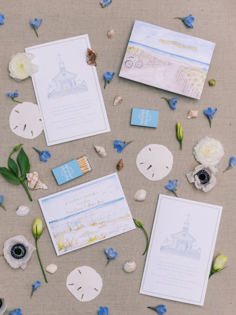 When asked to describe their wedding with three words, Sarah said, “Personal, Joyful, Rehoboth—we wanted every detail to be meaningful to us, our families, and our guests. We wanted our guests to feel like they were a part of our family and truly feel our love for each of them making a long trip to Delaware. We wanted the night to be the most fun party anyone’s ever been to, with festive cocktails, curated song lists, surprises, etc. We wanted our guests to experience so much of Rehoboth over the weekend and fall in love with the Delaware Coast. We wanted love to be felt at every turn.”