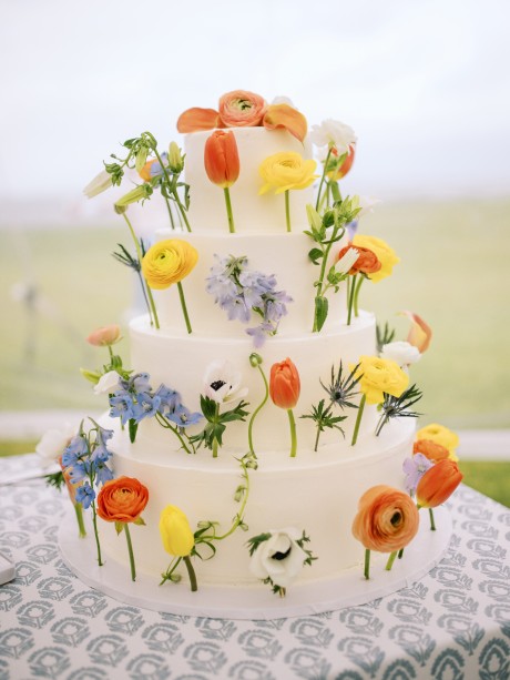 A stunning highlight of their wedding was the three-tier vanilla and buttercream wedding cake, baked and decorated by Rehoboth Beach Country Club’s new pastry chef, which was covered with a colorful variety of individual stemmed flowers and was devoured by guests. Late-night Grotto pizza was passed to guests as they worked up second appetites on the dance floor. To ramp up festivities, orange & blue light-up Pom Poms, glowing spirit sticks, blinking beach balls, and hats printed with “Virginia is for Lovers” were handed out to the guests.