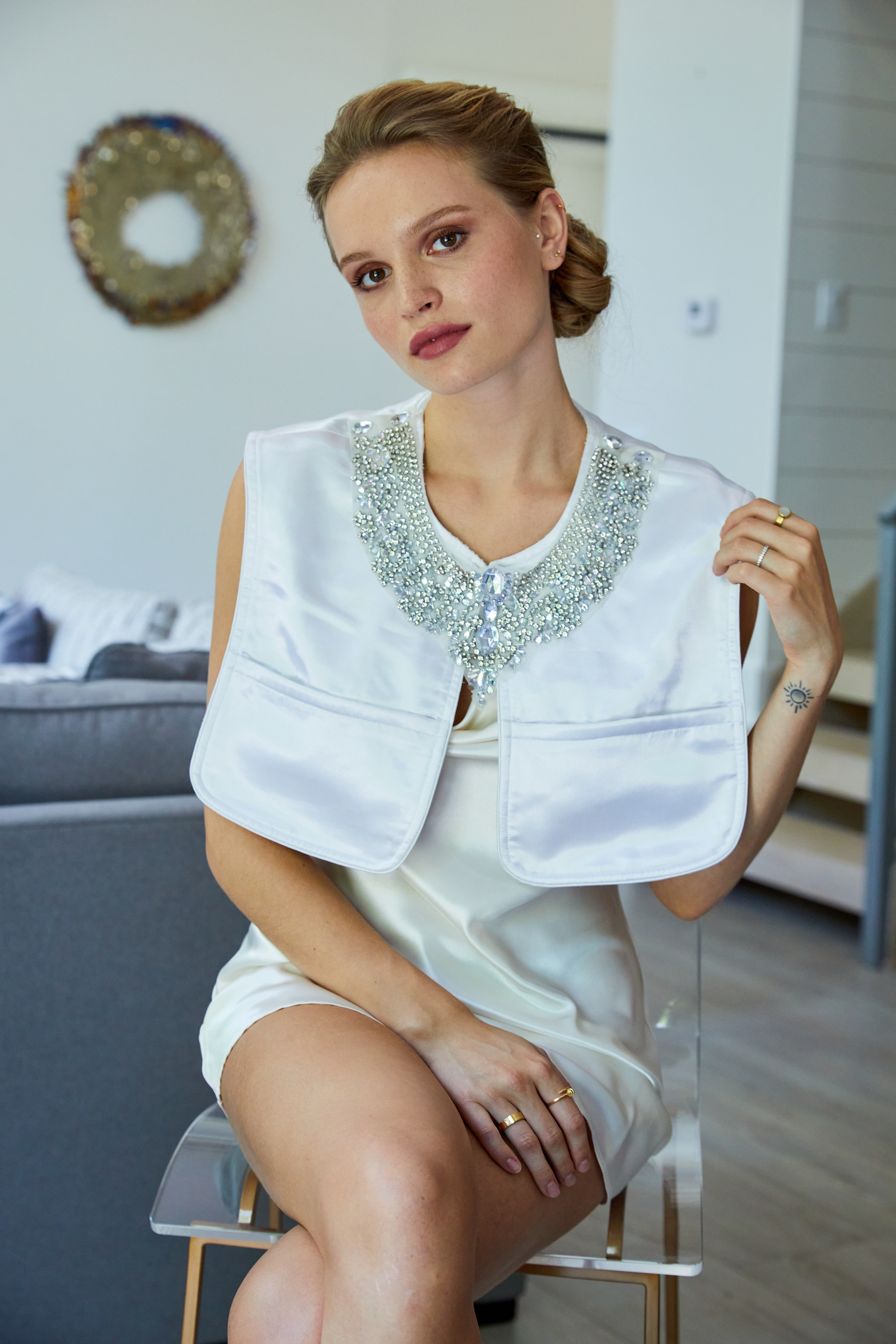 Each Monii in the bridal collection can be specifically designed for the bride and her bridal party. Custom Bridal Monii designs are adorned with rhinestones and/or pearls to compliment embellished bodices, or personalize the bridal party Monii with a name/initials. FYI, it’s way better than another feathered pajama set, or personalized tumbler, and they will continue using Monii long after the “I do.”