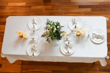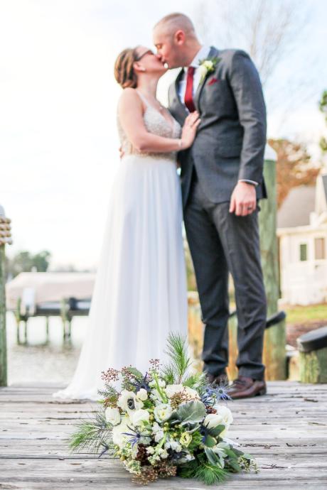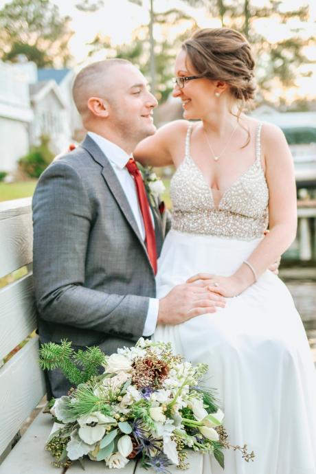 For "something old" the bride wore the groom's great-great grandmother's wedding ring.