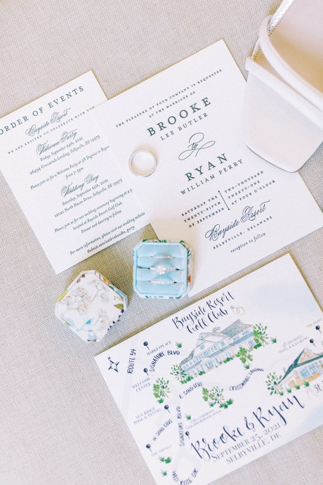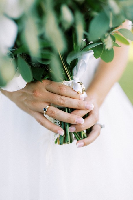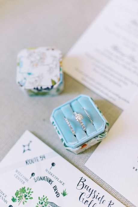 For "something old and something blue" the bride was gifted her mother's engagement ring that was made using family stones—the middle stone being sapphire.