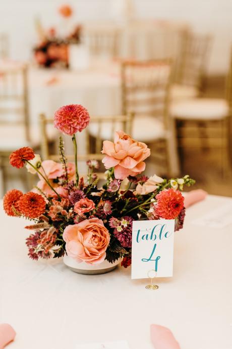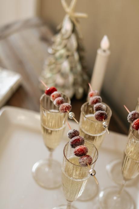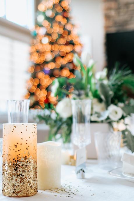 • Winter — Give us sugared cranberries, gold glitter and all the twinkle lights! Incorporate the existing holiday decor into your theme, or add touches of winter berries and greenery to your favorite blooms.