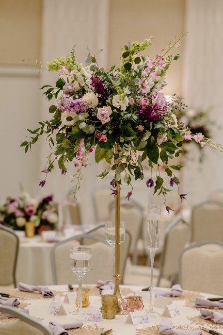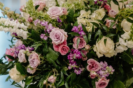 • Spring — A soft palette of pale purples, pops of magenta, and accents of green and white will keep those spring vibes going indoors and out. Choose seasonal stems that reflect the delicate freshness of local spring florals.