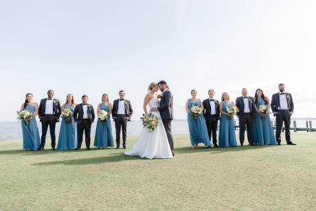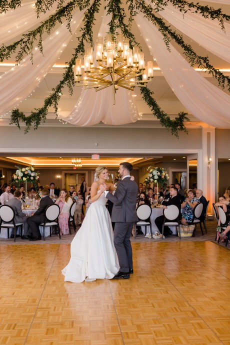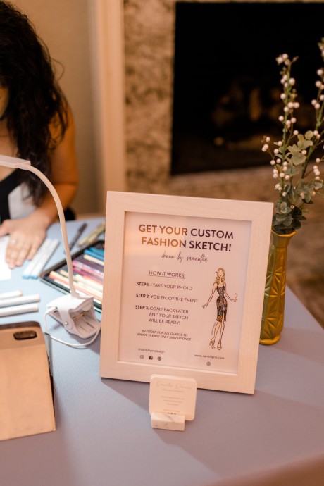 "We had a sketch artist who drew the bridal party and parents of the bride and groom throughout the ceremony. The pictures were then displayed so other guests could watch her and view her work. She was definitely a hit. During dinner, Ted and I also got on the mics and did a round of trivia. We had done Zoom trivia for our family and friends during the pandemic so we decided to do it one more time. This was a lot of fun as each table was a team, and it got people talking over a little competition."